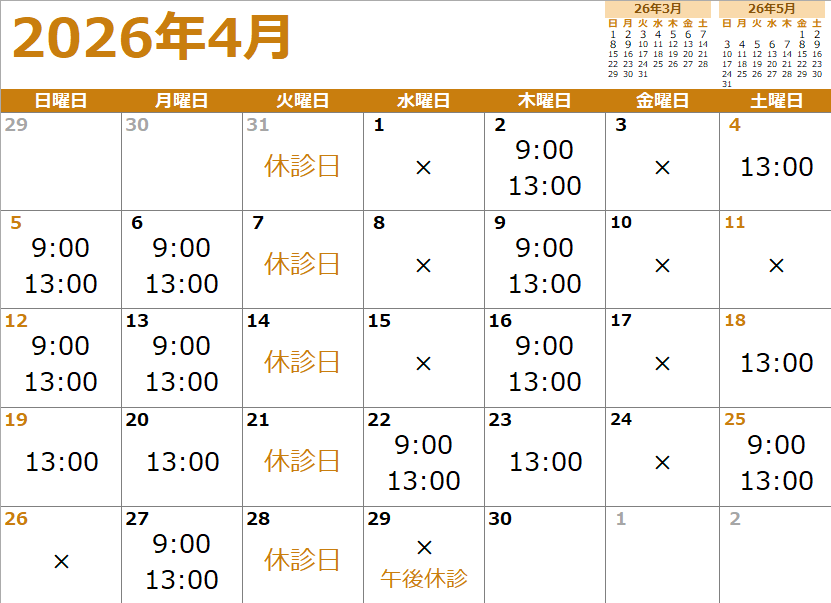 ・「9:00」 … 9:00受付での予約が可能です
